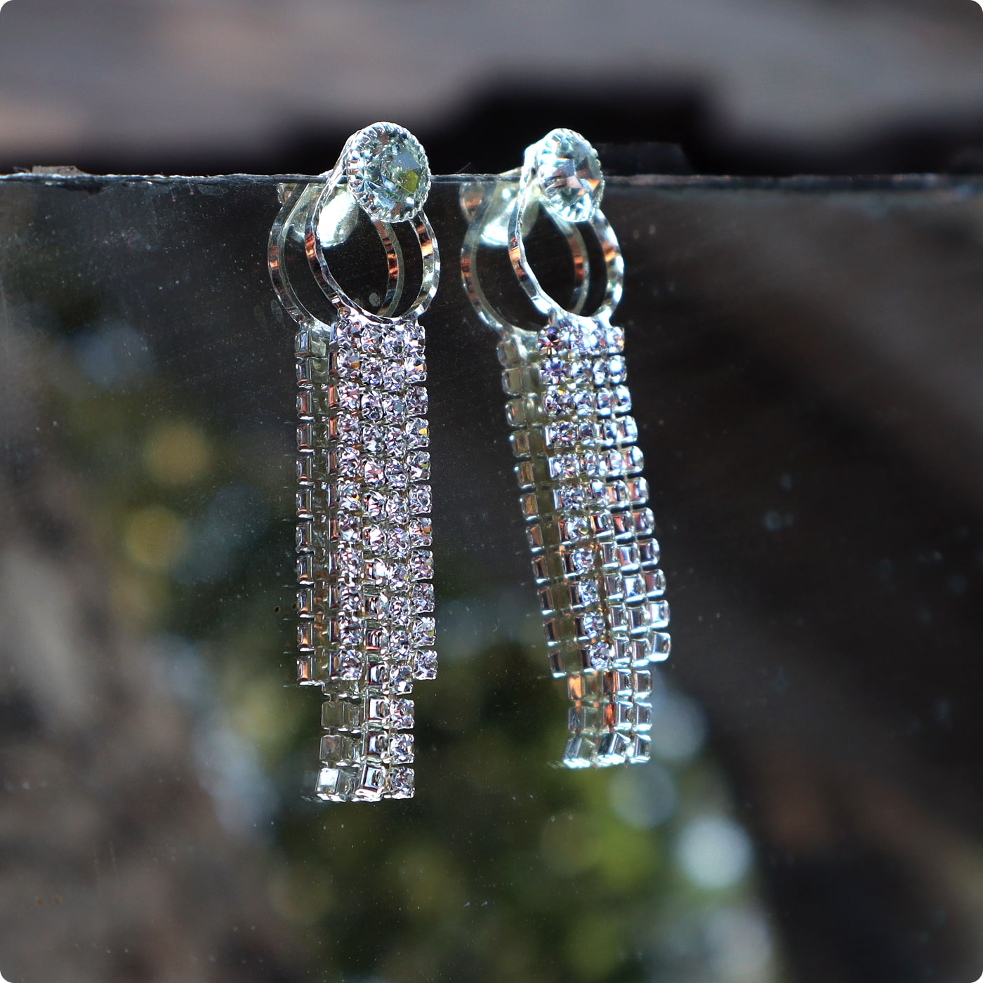 Add a touch of sparkle and sophistication to your look with these stunning silver crystal tassel earrings. Designed with shimmering rhinestones and a sleek drop design, these earrings bring a luxurious feel to any outfit, perfect for parties, weddings, and evening wear.