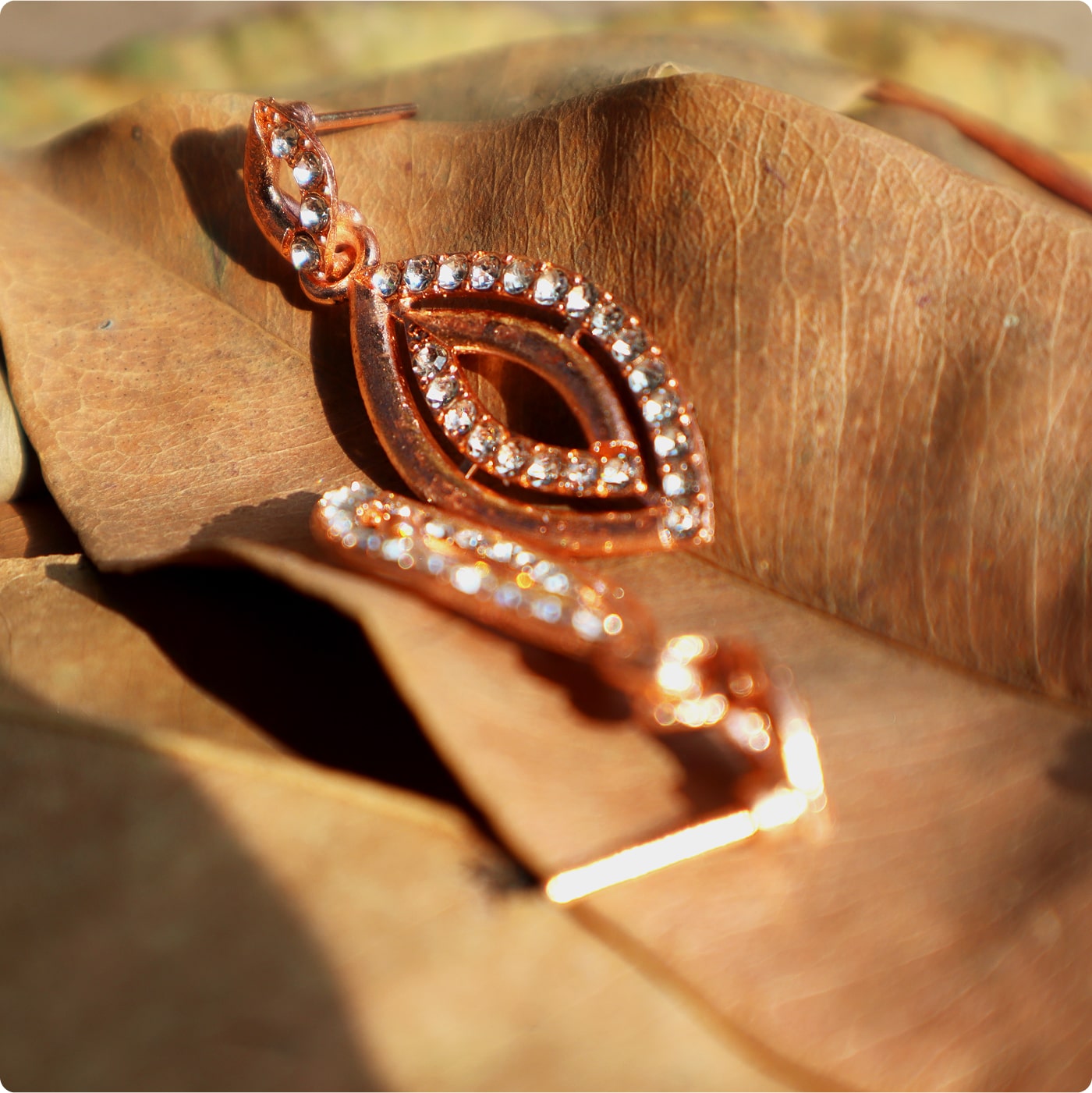 Make a bold fashion statement with these rose gold crystal drop earrings. Featuring a sleek open-leaf design outlined with shimmering stones, these earrings are perfect for parties, weddings, and evening wear. Lightweight yet striking, they add a touch of luxury and sophistication to any outfit.